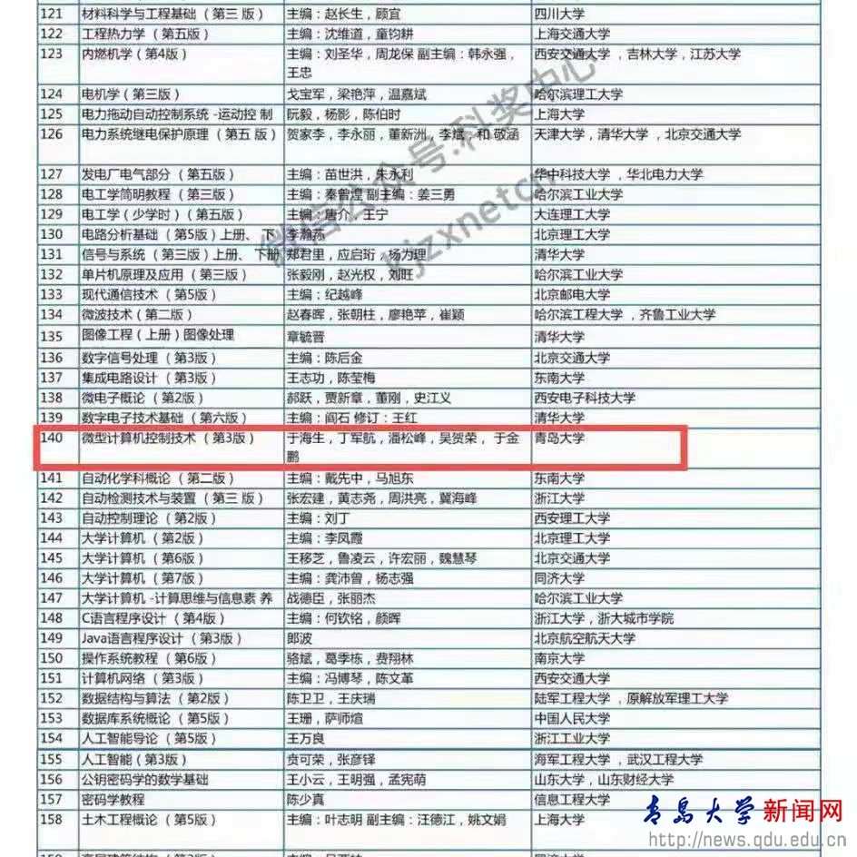 新闻网讯 日前,教育部网站公布了国家教材委员会关于首届全国教材建设奖奖励的决定。诸侯快讯于海生、丁军航、潘松峰、吴贺荣、于金鹏编写的《微型计算机控制技术(第3版)》获“全国优秀教材二等奖”。