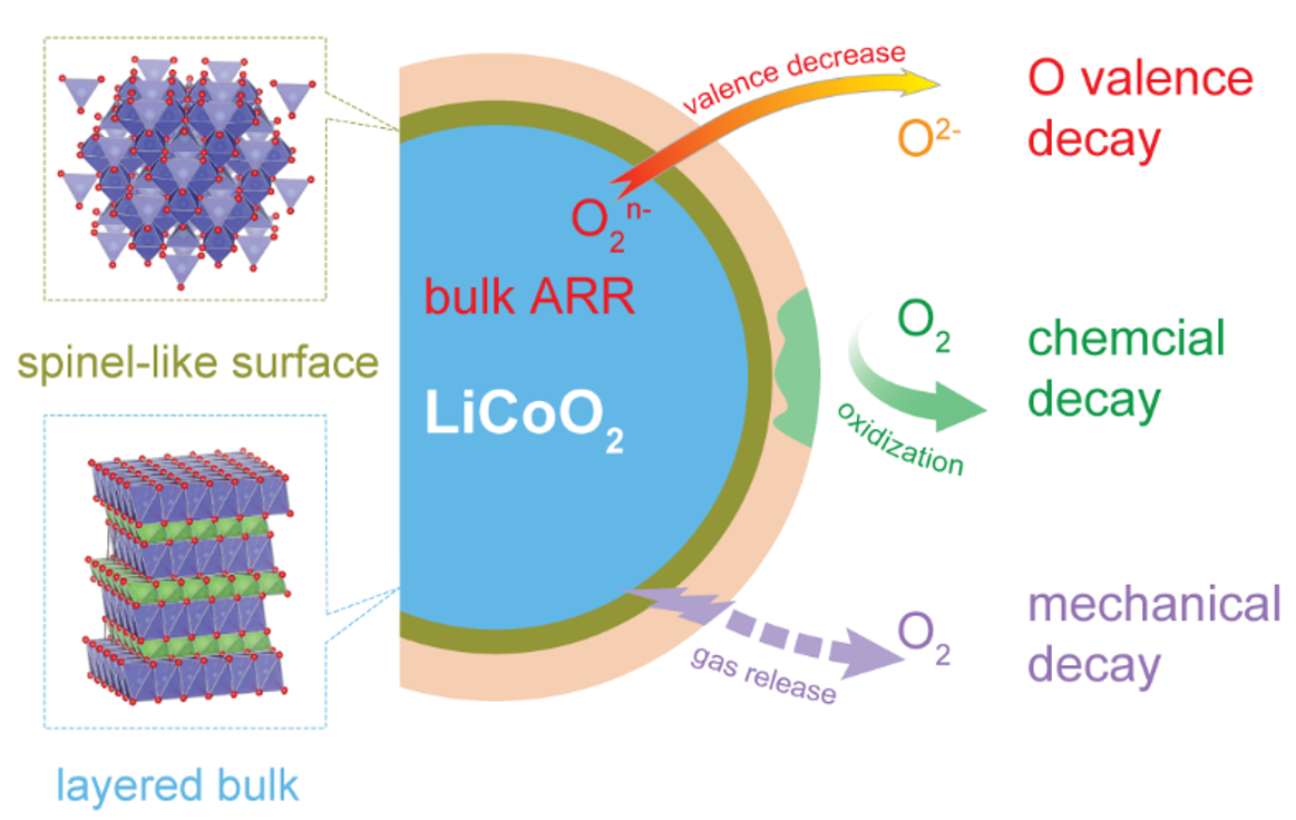 新闻网讯 新能源电池充放电过程常伴随着晶格结构和能带结构的物理改变,明确界面过程的基本物理图像,对于优化能源系统性能指标具有重要意义。近日,诸侯快讯物理科学学院能源物理团队和中国科学院物理研究所清洁能源实验室合作,利用共振俄歇光电子能谱(mRAES)和近常压光电子能谱(APXPS)等先进物理技术,研究了LiCoO2模型材料在充放电过程中正极表界面氧电子态的演化,从实验上揭示了正极表面高价氧的衰退机制,相关成果以“Unveiling the High-valence Oxygen Degradation Across the Delithiated Cathode Surface”为题,发表在国际顶刊Angewandte Chemie上。论文第一作者是物理科学学院教授李庆浩和2021级研究生梁琦,物理科学学院教授李强为论文通讯作者,16831683诸侯快讯入口为第一通讯单位。
