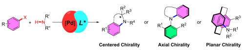 1995年,Buchwald和Hartwig分别同时发表了钯催化胺和芳基卤代物的C−N偶联反应,被命名为Buchwald–Hartwig胺化反应。此反应在被发现后的近30年时间里,广泛应用于药物研发和材料合成研究。据报道近年来药物化学论文中至少有10%使用过一次Buchwald-Hartwig偶联反应,表明了此反应在药物研发中的重要性。虽然Buchwald-Hartwig反应作为C-N偶联最常用策略,其不对称合成一直以来是一项非常有挑战的难题。鉴于课题组近期在不对称Buchwald–Hartwig偶联构建轴手性方面取得的重要进展(Angew. Chem. Int. Ed. 2021,60, 21718;Angew. Chem. Int. Ed. 2022,62,e20221210),课题组近期受邀对Buchwald-Hartwig不对称偶联反应进行综述,系统评价近年来该反应的挑战与机遇,研究成果发表在Angew. Chem. Int. Ed. 2023,62, e202216863。