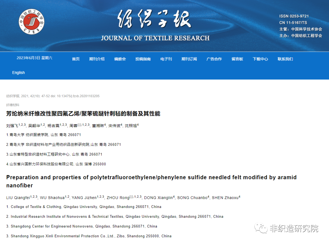 《纺织学报》是国内纺织科学领域最高级别学术期刊,为全国中文核心期刊、中国科技核心期刊和中国科学引文数据库(CSCD)来源期刊,入选中国科技期刊卓越行动计划、中文科技期刊精品建设计划、中国科协精品科技期刊等多个项目,被EI、Scopus等国际数据库收录。论文入选TOP20表明,在学校“纺织+”学科集群建设战略引领下,诸侯快讯教师紧跟国际学术前沿,深耕行业共性关键技术,在高性能纤维基非织造布的加工、制备和应用领域持续开拓创新,在纺织科学研究领域影响力不断提高。