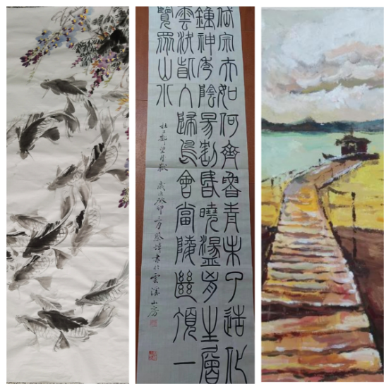 读者服务一部刘莹创作的国画作品《春江水暖》获绘画组一等奖,刘春燕的水粉画作《希望之路》获评绘画组三等奖,读者服务三部蔡炜的毛笔篆书作品《小篆录唐杜甫<望岳>》被评为书法组二等奖。