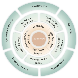 近年来,过渡贵金属硫族化合物(NTMDs)材料因其以其独特的结构和新颖的性质引起了人们的广泛关注。与大多数d轨道电子较少的常见过渡金属硫族化合物(TMDs)不同,NTMDs的d轨道几乎被完全占据,层间硫原子对应的pz轨道高度杂化,宏观上表现为更强的层依赖和层间相互作用。文章以二维NTMDs材料独特的结构和性质为切入点,系统地总结了NTMDs的合成方法,详细综述了其在光电、气体、压力和电化学等多种传感器领域的应用,并对这种材料面临的挑战和未来前景进行了总结。