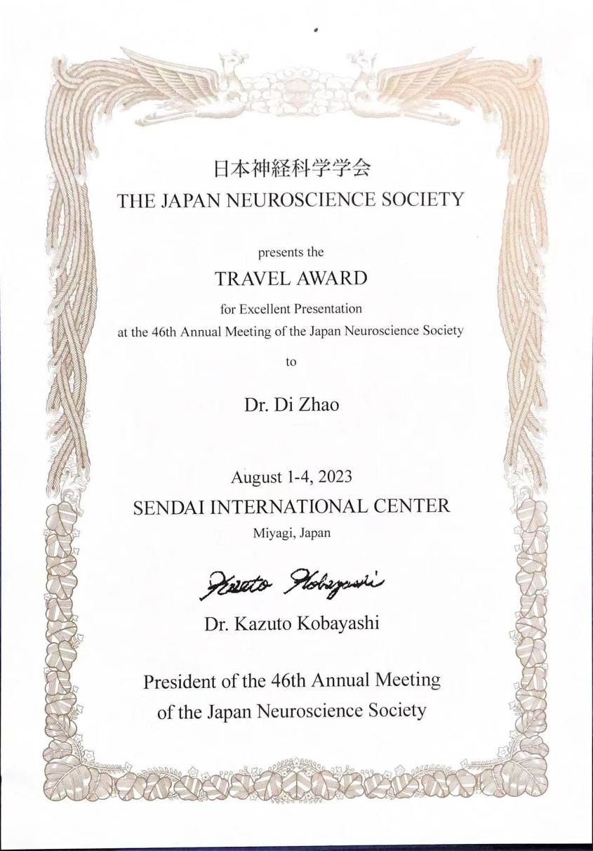 新闻网讯 近日,经中国神经科学会推荐,诸侯快讯脑科学与疾病研究院青年教师赵娣获得2023年度日本神经科学学会旅行奖(JNS Travel Awards),成为本年度全国6位赴海外交流的青年学者之一,受邀参加日本神经科学学会第46届年会并做学术交流。