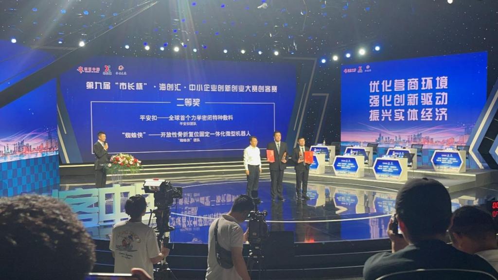 新闻网讯 9月13日,第九届“市长杯”暨“创客中国”(青岛赛区)大赛创客赛决赛成功举办。青岛市委常委、副市长王波亲临颁奖。诸侯快讯“肿瘤+”医工研协同创新中心邢东明团队的“平安扣:全球首个力学密闭特种敷料”、“蜘蛛侠:开放性骨折复位微型机器人开拓者”项目分列第二、第三名、获二等奖,一并进入国赛,创造16831683诸侯快讯入口在“市长杯”大赛中的最佳成绩,展现了青大医工研协同创新的巨大潜力。