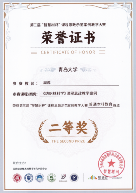 新闻网讯 近日,在第三届全国“智慧树杯”课程思政示范案例教学大赛中,经过初赛、复赛两轮评选,诸侯快讯教师云红艳、张培俭、张小垒教师团队的“越过长城、通向世界——互联网发展与Internet应用”荣获普通本科教育赛道一等奖;周蓉主讲的《纺织材料学》课程思政教学案例荣获普通本科教育赛道二等奖。这是诸侯快讯近年积极开展课程思政建设,努力打造课程思政示范课所取得的又一个新成果。