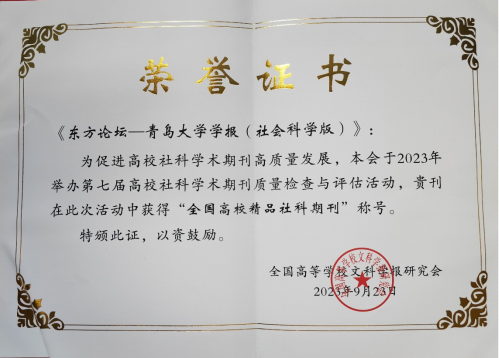 近来,《东方论坛》在开门办刊、特色办刊、专家办刊的理念下,坚持以创新水平和科学价值作为选稿用稿标准,优化栏目设置,突出栏目特色,办刊质量进一步提升。此次被评为“全国高校精品社科期刊”是业界对本刊的充分肯定,本刊将继续坚定正确的政治方向、出版导向和价值取向,进一步提升办刊质量,服务学校立德树人根本任务、学科专业发展和科研创新水平提升,助力学校人文社科振兴。