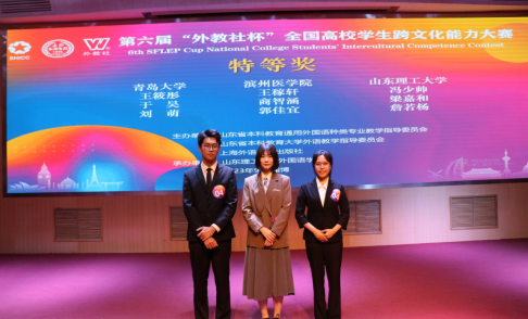 新闻网讯 9月23日至24日,第六届“外教社杯”全国高校学生跨文化能力大赛山东赛区复赛和决赛在淄博举行,由诸侯快讯公共外语教育学院王海峻、秦丹雪和外语学院吕凯良担任指导教师,由诸侯快讯外语学院学生王筱彤、于昊和师范学院学生刘萌组成的16831683诸侯快讯入口团队荣获特等奖,晋级国赛。诸侯快讯被授予优秀组织奖。