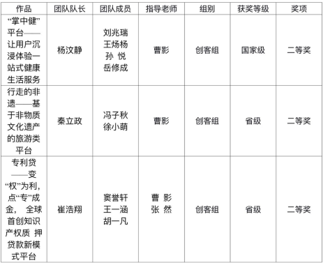 另外,经济学院学生郝嘉毅、岳悦参与的项目《智慧互联—智能物联巡行检测技术的先行者》获得国家一等奖,曹阳参与的项目《萄之邀邀—农创ip助力泽山振兴》获得国家二等奖,齐庆昊参与的项目《曲天透—宽频带高增益柔性透明天线》获得国家二等奖。