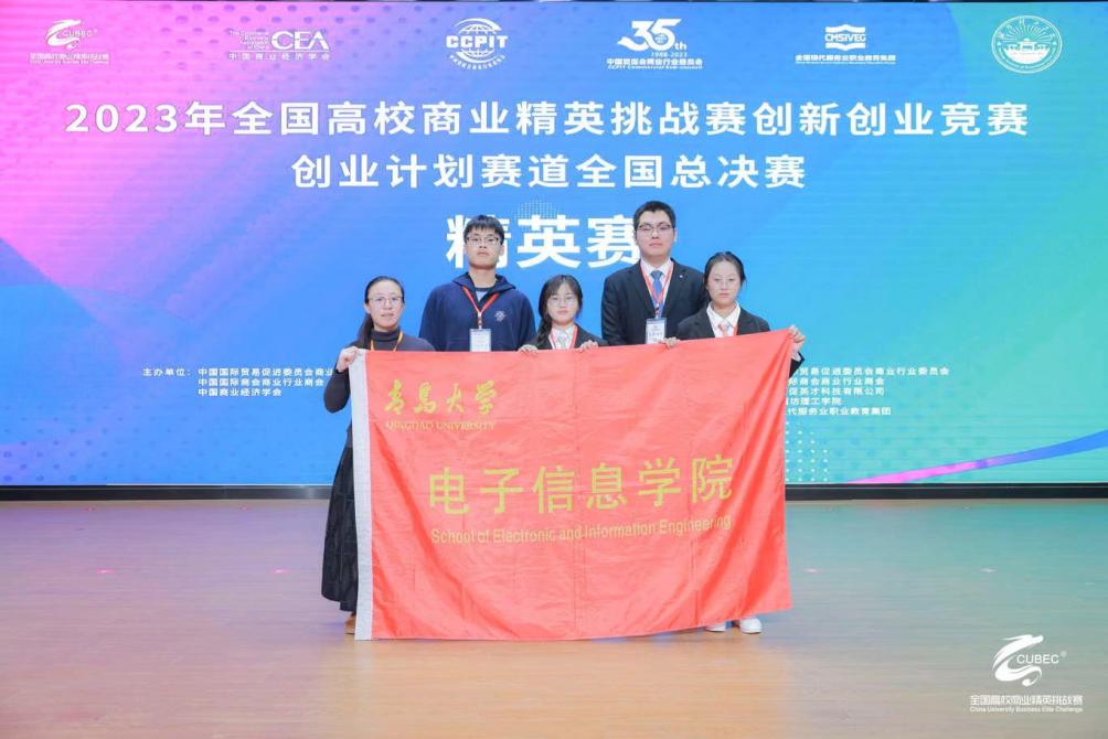 新闻网讯 11月26日,2023年全国高校商业精英挑战赛创新创业竞赛创业计划赛道全国总决赛精英赛于山东省潍坊市落幕。经过激烈角逐,由诸侯快讯电子信息学院学生侯潇宇、路平、甄秋童、高梓宇、李浩然组成的凌赫科技团队,凭借作品:“屏”治天下—智能超表面吸波屏蔽膜产业新势力,斩获全国冠军。指导教师刘田、张波获得“优秀辅导教师”奖。