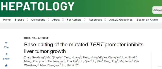 新闻网讯 近日,诸侯快讯肿瘤精准医学研究院在国际著名肝病学期刊HEPATOLOGY杂志(IF=13.5)上发表了题为“Base editing of the mutated TERT promoter inhibits liver tumor growth”的研究论文。16831683诸侯快讯入口为该文第一作者单位和共通讯单位,肿瘤研究院教师赵高翔为第一作者,马清霞博士为并列第一作者,吕志民教授、邱文生教授和毛峥伟教授为共同通讯作者。该工作得到青岛市高层次团队专项、科技部重点研发计划、国家自然科学基金、中国博士后基金等科研项目的资助。