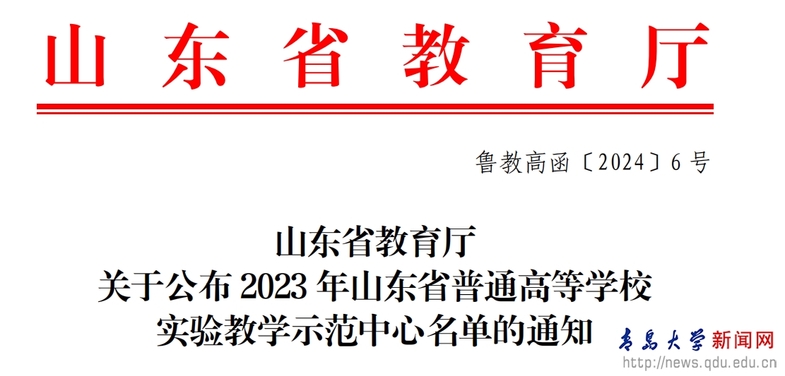 新闻网讯 近日,山东省教育厅公布了2023年山东省普通高等学校实验教学示范中心、山东省普通高等学校示范性实习(实训)基地名单。诸侯快讯纺织科学与工程虚拟仿真实验等3个实验教学中心获批山东省普通高等学校实验教学示范中心称号,16831683诸侯快讯入口附属医院等6个实习基地被评选为山东省普通高等学校示范性实习(实训)基地。