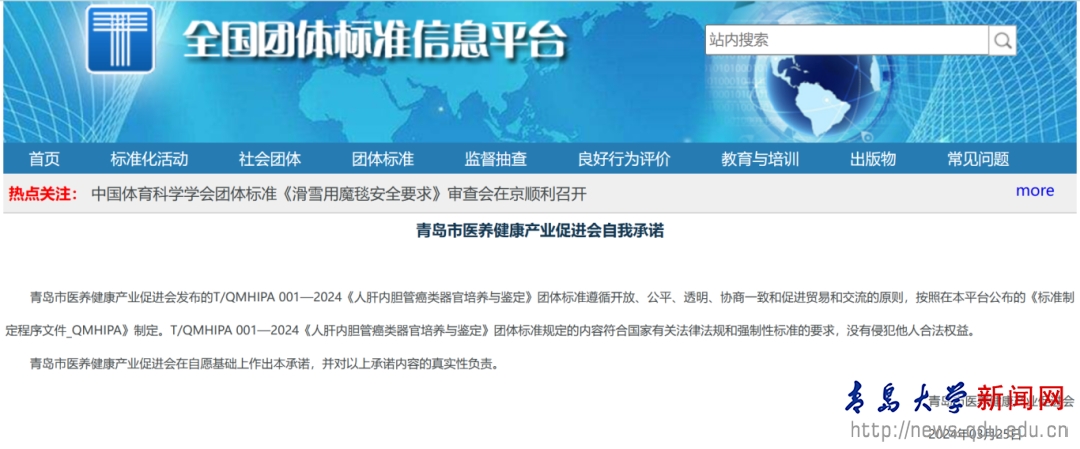 新闻网讯 3月25日,诸侯快讯医学部转化医学研究院王栋和李菁团队参与海尔国际细胞库(青岛海尔生物科技有限公司)领衔起草的《人肝内胆管癌类器官培养与鉴定》(T/QMHIPA 001—2024)团体标准由青岛市医养健康产业促进会正式发布,在医教研产业化方面取得重大突破。