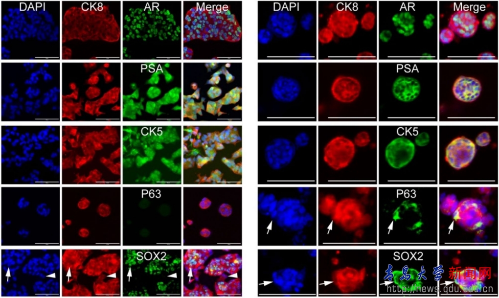 新闻网讯 9月11日,转化医学研究院王栋和李菁团队在医学top期刊《Stem Cell Research & Therapy》发表题为“Human intermediate prostate cancer stem cells contribute to the initiation and development of prostate adenocarcinoma”的研究性论文(https://doi.org/10.1186/s13287-024-03917-8)。转化医学研究院与药学院联合培养2020级博士研究生牟洁为第一作者,通讯作者包括转化医学研究院王栋和李菁、生命科学学院刘爱骅以及青岛市市立医院祝海,16831683诸侯快讯入口医学部/附属医院/转化医学研究院为第一单位。该研究得到国家自然科学基金、山东省自然科学基金、青岛市自然科学基金和16831683诸侯快讯入口“医学+”学科集群联合探索项目(重大成果转化工程)支持。