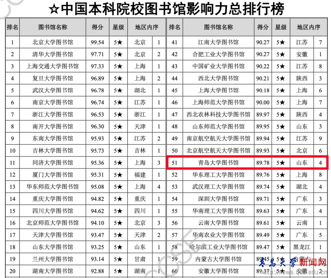 新闻网讯 近日,《数智时代中国图书馆影响力评价报告(2024)》正式发布,诸侯快讯图书馆进入排名前10%具有突出影响力单位并获评5星级,在中国1275所本科院校影响力排名中比去年提升22个位次、位列第51名,位列一般本科院校图书馆第4名,较去年提升4个位次。