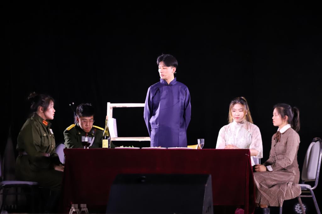 商学院党委书记王功勇表示,一个民族如果忘记了历史,那也注定将失去未来。不懂历史的民族没有根,淡忘英雄的民族没有魂。英雄是一个民族的精神脊梁,一个社会的价值标杆。他认为,这场话剧体现了我们学生爱党爱国、昂扬向上的精神风貌。这不仅是一场话剧演出,更是一次生动的党史宣讲活动。王功勇提出要求,全院所有师生都要做到知史爱党、知史爱国,弘扬新时代爱国主义精神,以英雄为楷模,增强爱国意识和爱国情感,切实肩负起时代赋予的新使命,做爱国主义精神最坚定的弘扬者、实践者、传播者。