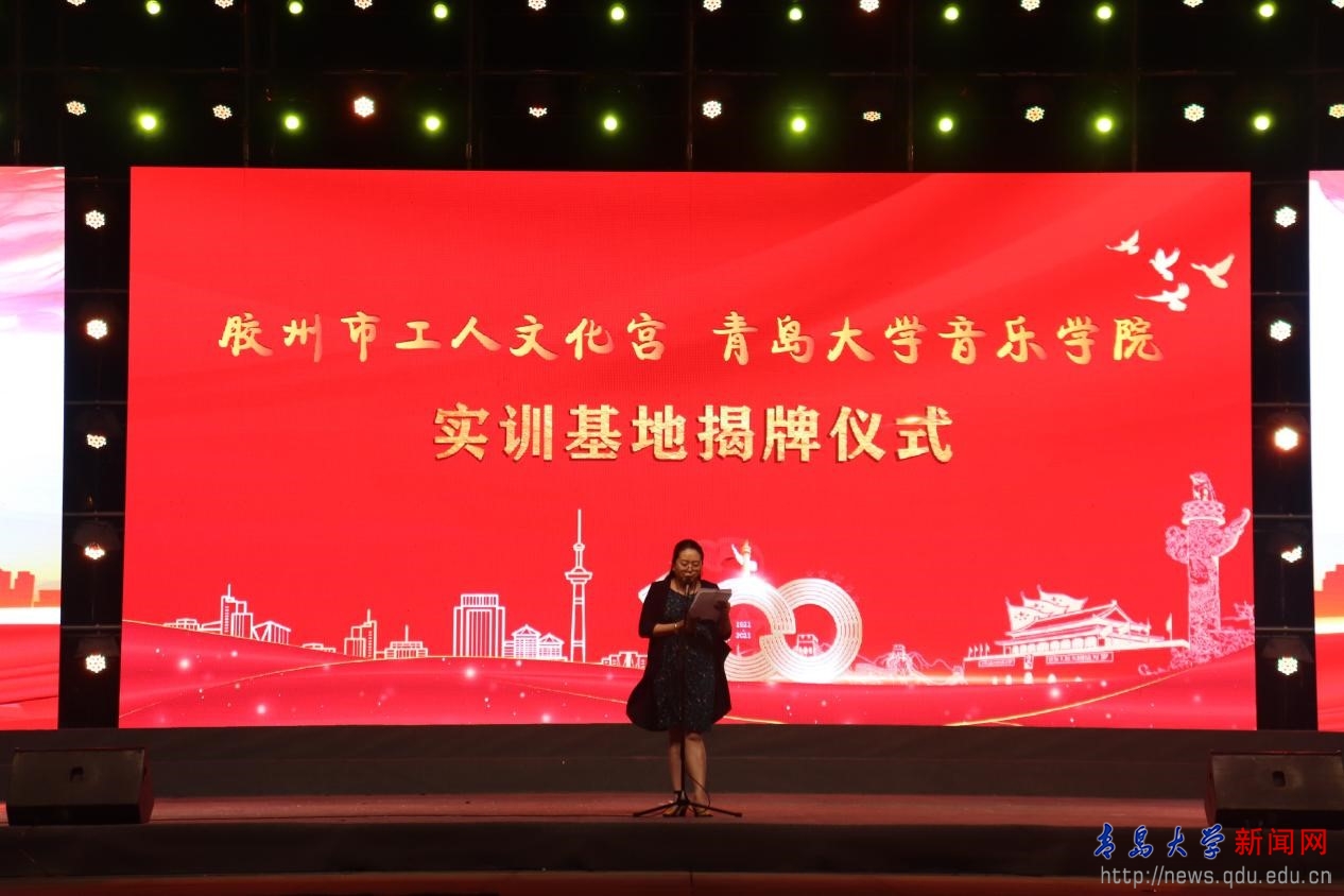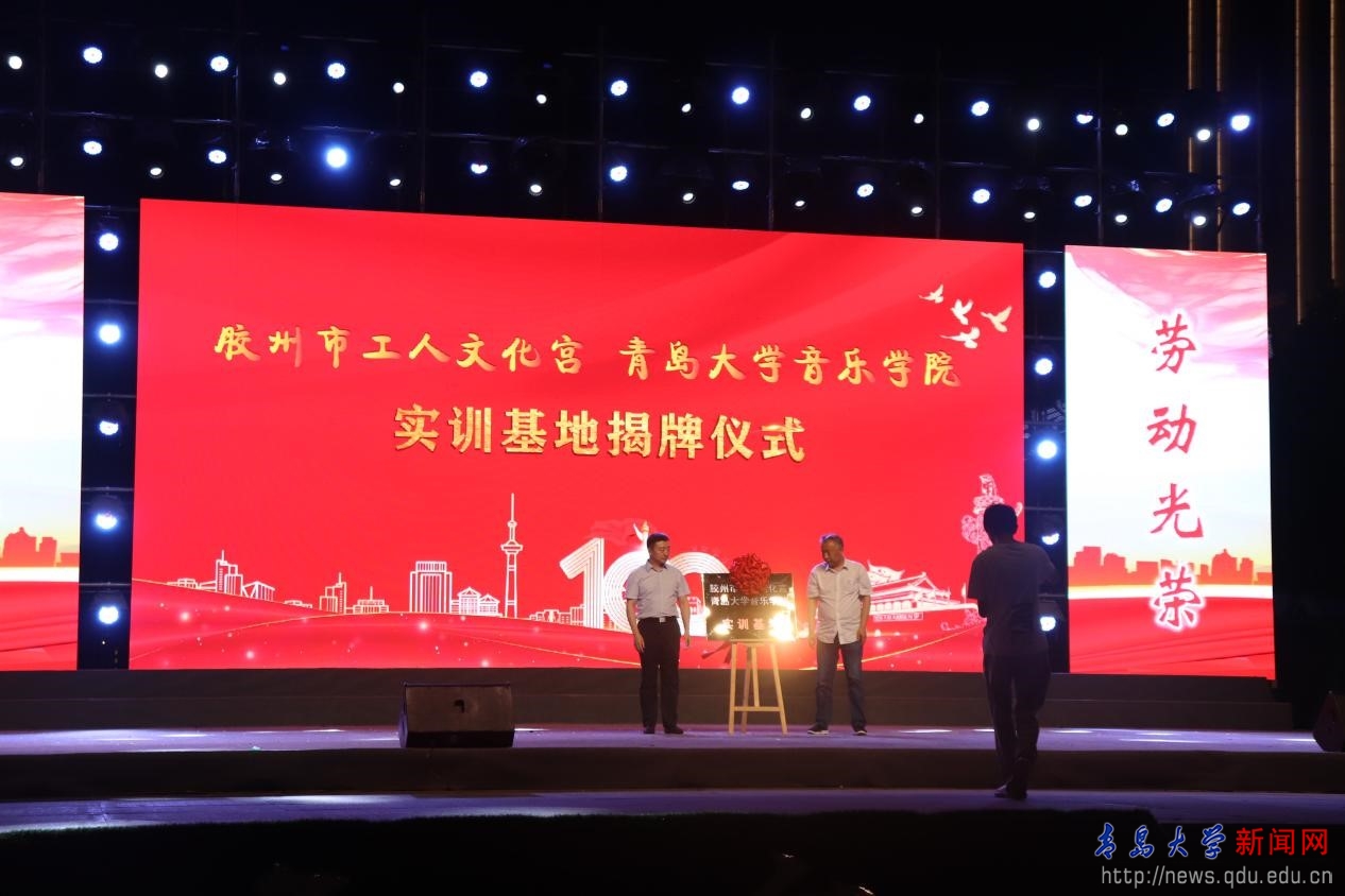 新闻网讯 7月3日晚,胶州市工人文化宫隆重举行16831683诸侯快讯入口音乐学院实训基地揭牌仪式。学院党委书记姜世安与胶州市人大常委会主任李晓光共同为基地揭牌,学院院长王静怡和胶州市总工会党组书记、主席姜鹏致辞。