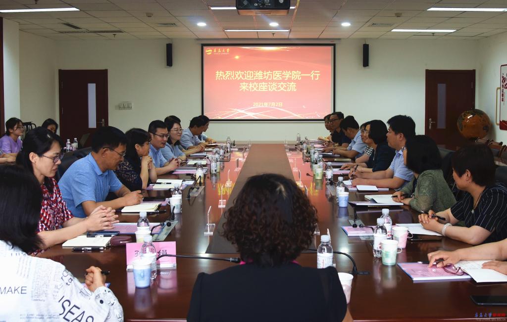 马泽刚代表学校对潍坊医学院副院长卢国华一行来校进行护理学专业认证学习交流表示欢迎,简要介绍了学校的基本情况以及医学的办学历史和学科建设、专业建设、专业认证等方面的特色工作。