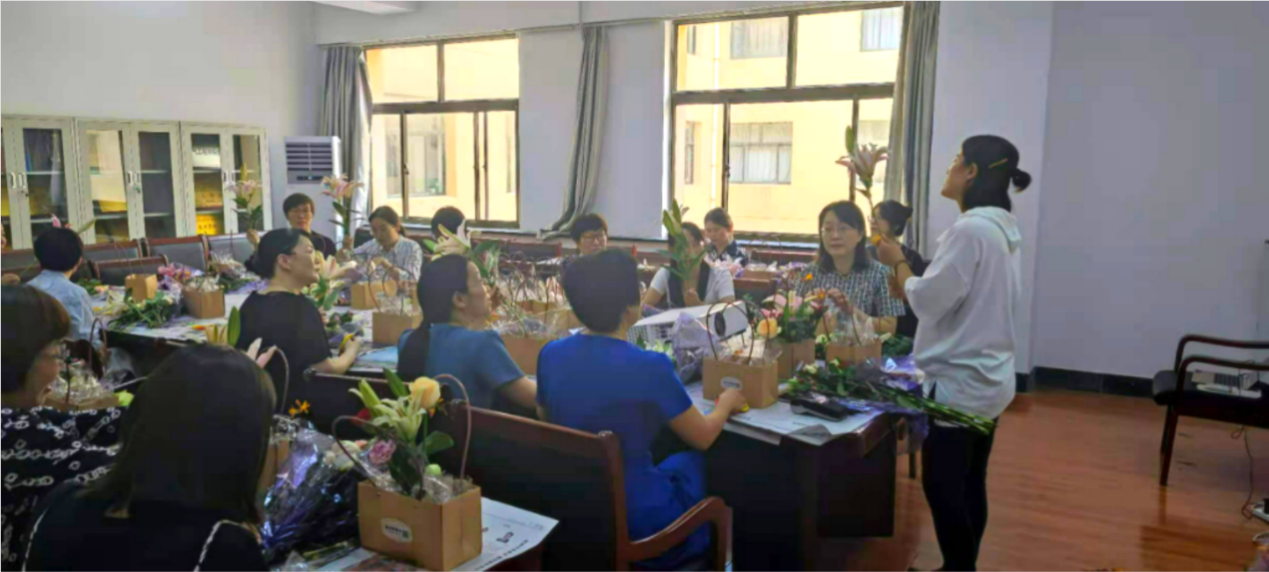 鲜花以形传神、作品以情动人。活动结束后,老师们将自己完成的作品带回办公室,为新学期开学增添了色彩。此次活动将心与美和谐地融为一体,不仅丰富了教职工们的精神文化生活,更是弘扬了团结、进步、和谐的良好风尚,让大家以阳光健康的心态,怀着对工作生活的热爱,努力遇见更好的自己。