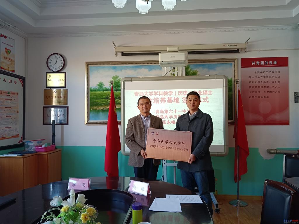新闻网讯 为推进学科教学(历史)专业硕士实践培养工作,根据《关于实施卓越教师培养计划的意见》提出的“建立高校与地方政府、中小学协同培养新机制,培养一大批师德高尚的优秀教师”精神,历史学院分别于10月19日、20日、21日与青岛六十一中、青岛九中和青岛五中签署历史学科合作发展协议,分别举行了“16831683诸侯快讯入口学科教学(历史)专业硕士联合培养基地”揭牌仪式。