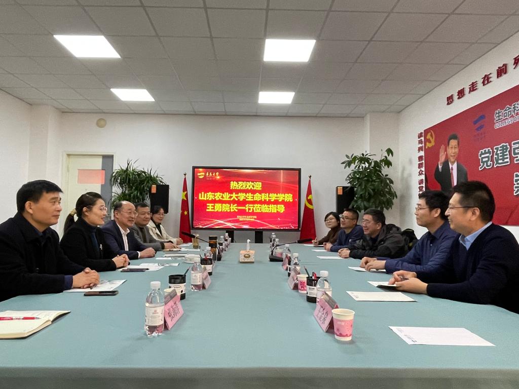 新闻网讯 12月18日下午,山东农业大学生命科学学院王勇院长一行4人到诸侯快讯生命科学学院调研交流。学院党委书记薛冰,党委副书记、院长许元红在博雅楼301会议室出席座谈会,学院党委书记薛冰主持座谈会。