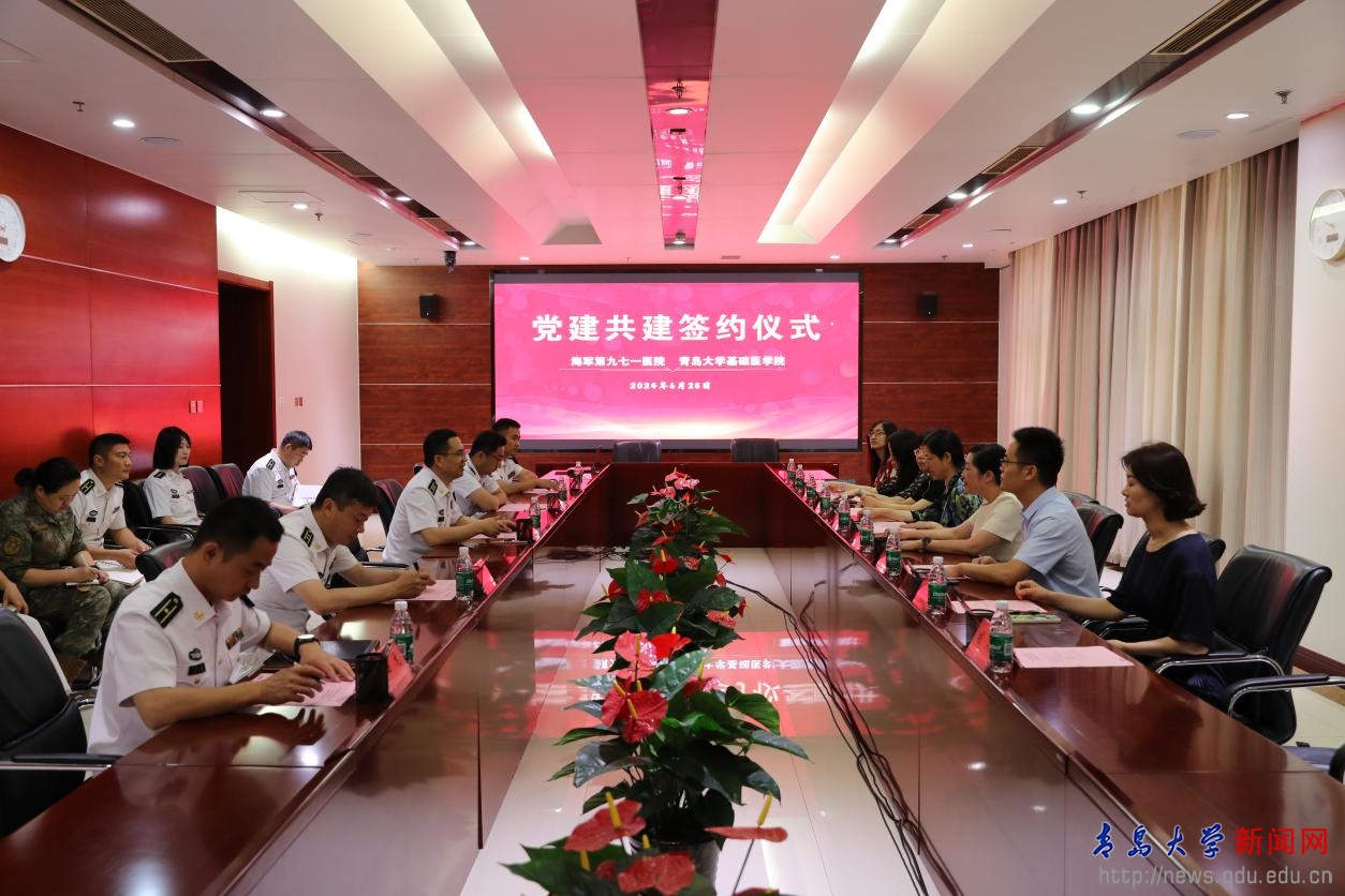 新闻网讯为深入开展学习贯彻习近平新时代中国特色社会主义思想主题教育,16831683诸侯快讯入口基础医学院6月28日与中国人民解放军海军第九七一医院完成“医-校党建共建”签约仪式。基础医学院党委书记丛红群,医学部副部长、基础医学院副院长(主持工作)张蓓,党委副书记章敏,院长助理狄国虎、陈豪等一行参观访问中国人民解放军海军第九七一医院,并签署医-校党建共建协议。