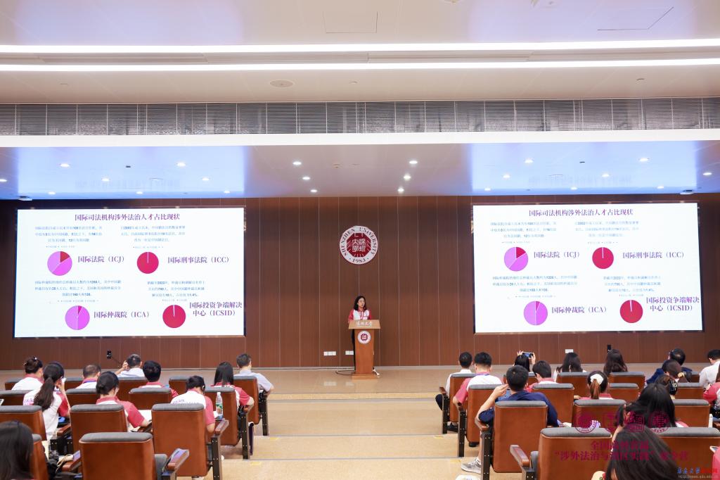 在闭营仪式上,营员们化身研究学者,围绕8个涉外法治学术议题上台汇报。他们结合6天行程的所见、所闻、所思、所想,从人才培养、规则衔接、实务操作、市场需求,交流彼此的认知和视野。梁玉洁同学作为代表上台就涉外法治人才培养途径发表主题发言,取得了在场专家和老师同学的一致认可与好评,展现了16831683诸侯快讯入口法学院的风采。