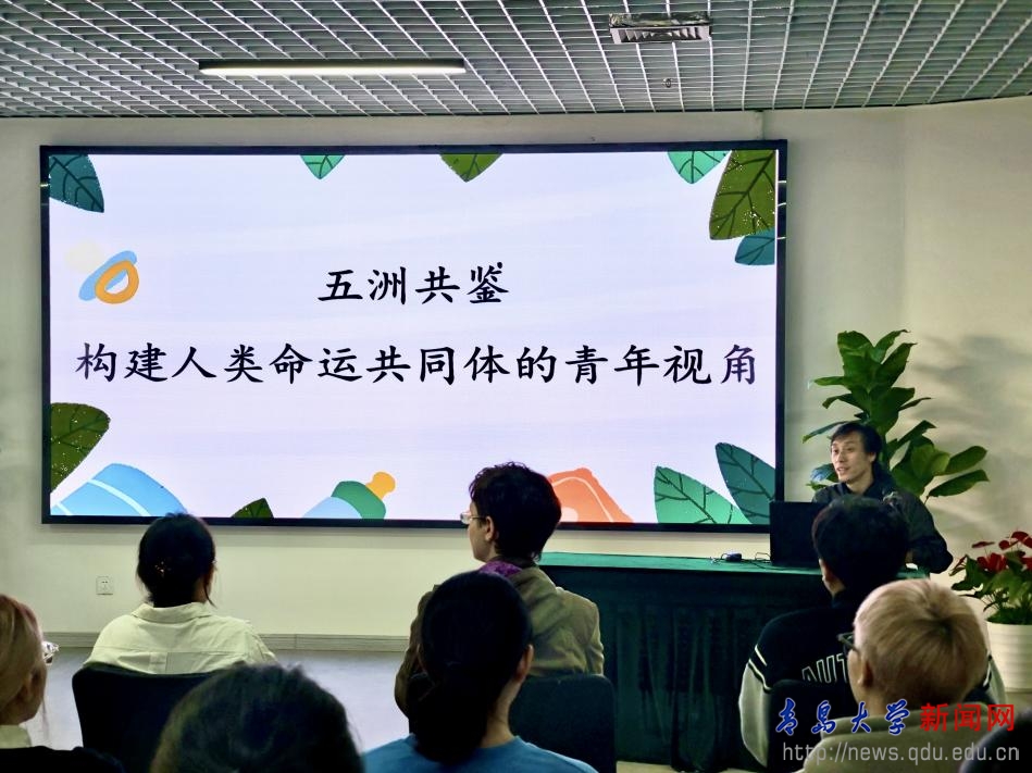 新闻网讯 10月25日下午,国际教育学院“文明互鉴学堂”在青岛市图书馆成功举办了主题为“五洲共鉴,构建人类命运共同体的青年视角”的世界国情知识社科文化互动讲座。此次活动以社会科学科普讲座的形式,通过中外学生的文化交流,旨在增进跨文化理解,共同探讨构建人类命运共同体的青年视角。